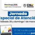 El Consejo Nacional Electoral informa a la ciudadanía que este fin de semana llevará a cabo una jornada especial de atención en los puntos habilitados en territorio, con el propósito de fortalecer el acompañamiento institucional y garantizar el acceso oportuno a los servicios electorales. Durante esta jornada,…